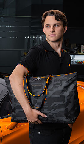 Conçue pour et par les passionnés de McLaren, cette nouvelle version de notre emblématique cabas Just in Case® revête un design rétro rappelant la combinaison de course de Bruce McLaren.